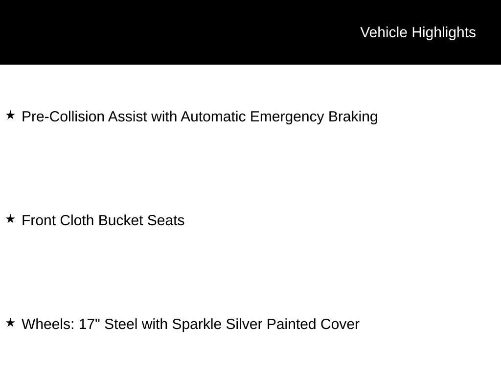- Wheels: 17" Steel with Sparkle Silver Painted Cover