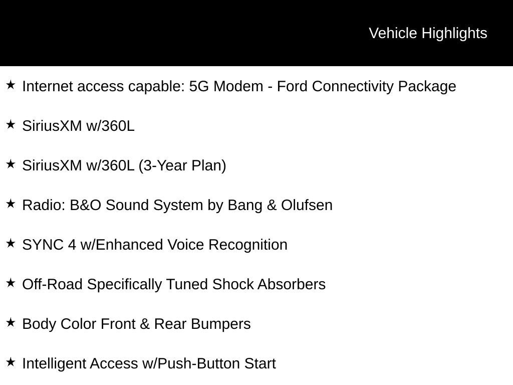 • Internet access capable: 5G Modem - Ford Connectivity Package