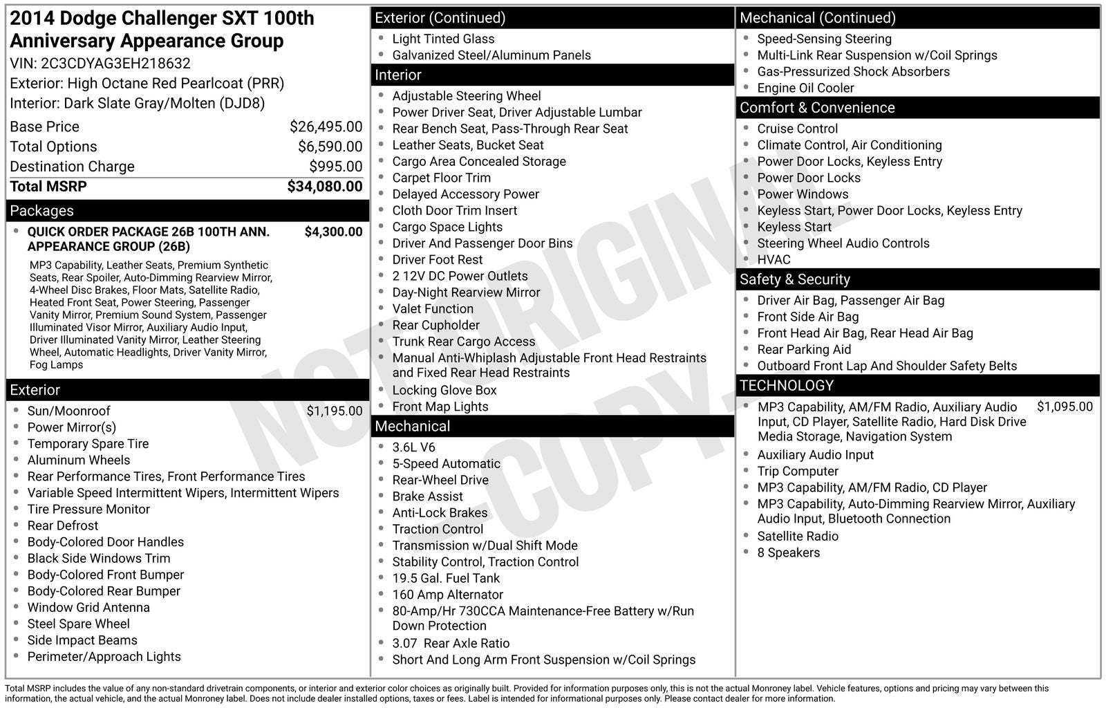 Red 2014 Dodge Challenger SXT RWD 5-Speed Automatic 3.6L V6 24V VVT