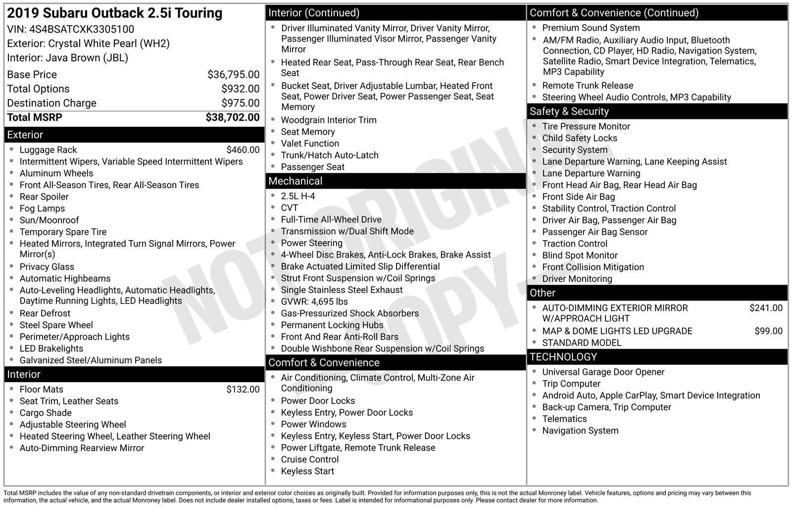 - Vehicle Name: Subaru Outback